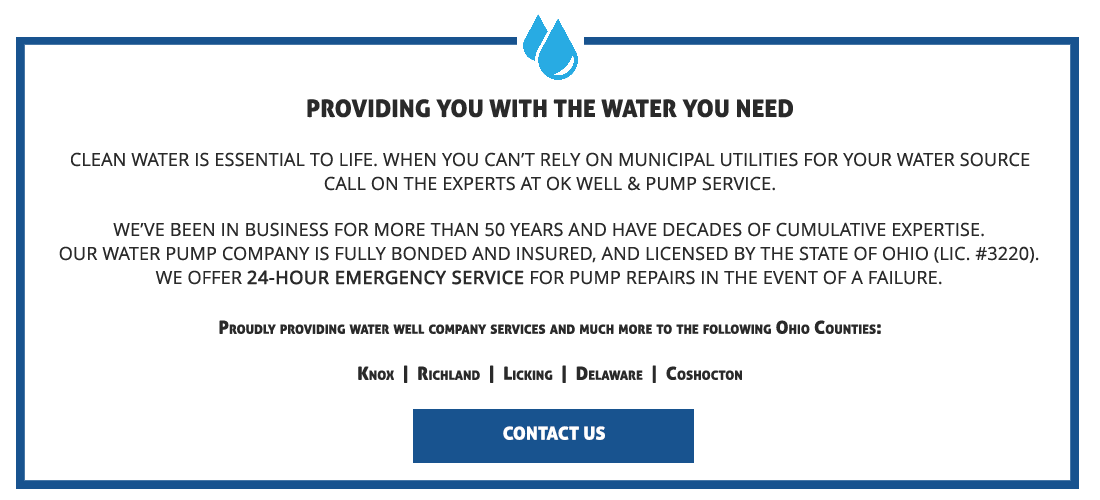 Why call Ok Well and Pump Service, for Water Well Drilling & Pump Service in Central Ohio?
